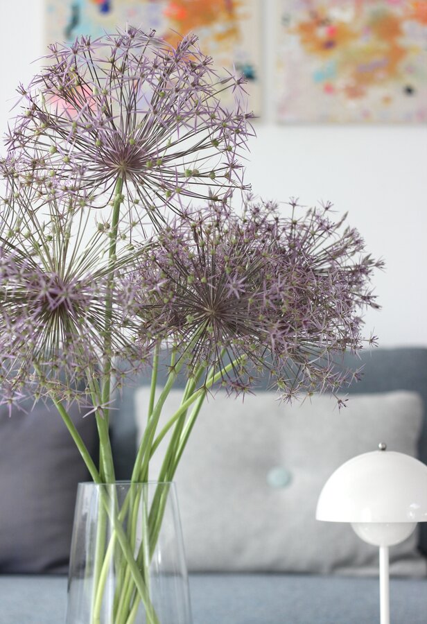 Vase, Deko, Kissen, Bilder, Sofa, Lila