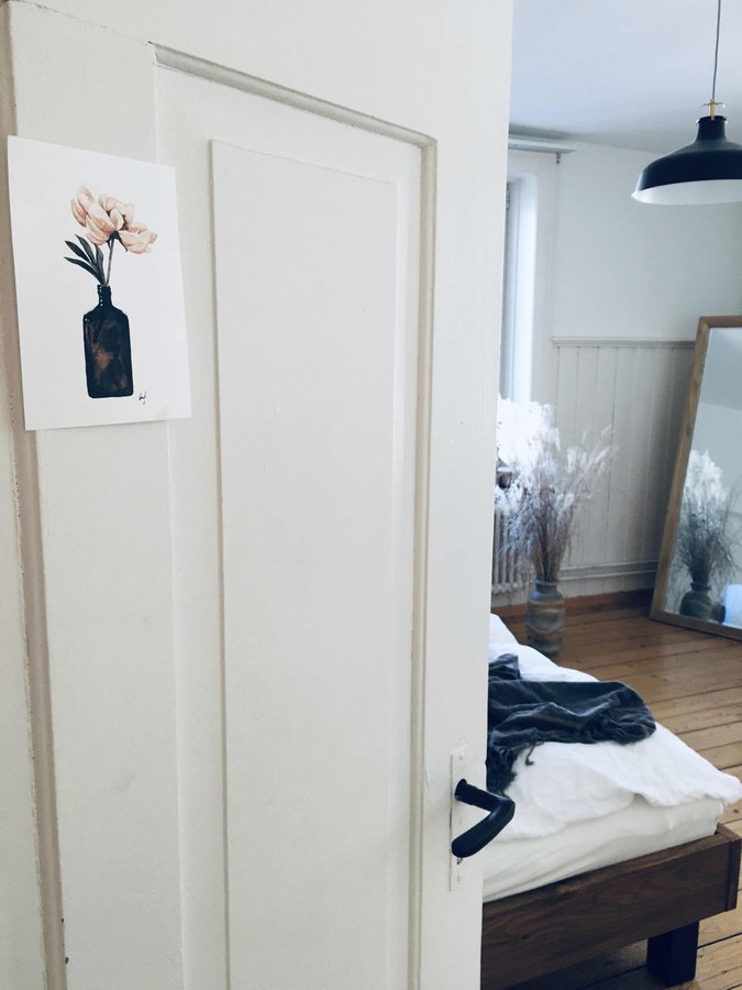 Türe, Bett, Schlafzimmer, Spiegel, Vase, Bettdecke, Altbau