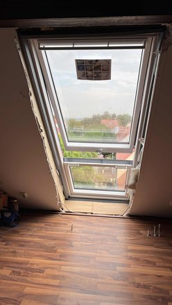Ausgerechnet bei 35 grad Außentemperaturen mussten die Arbeiten zum Dachfenstertausch beginnen. Die innentemperaturen waren gleich der Außentemperatur. Zum Glück liegt mein Büro im anderen Teil der Wohnung und hat eine Klimaanlage. Bei diesen großen Gaubenfenstern leider unumgänglich. Die Bauarbeiter taten mir aber sehr leid