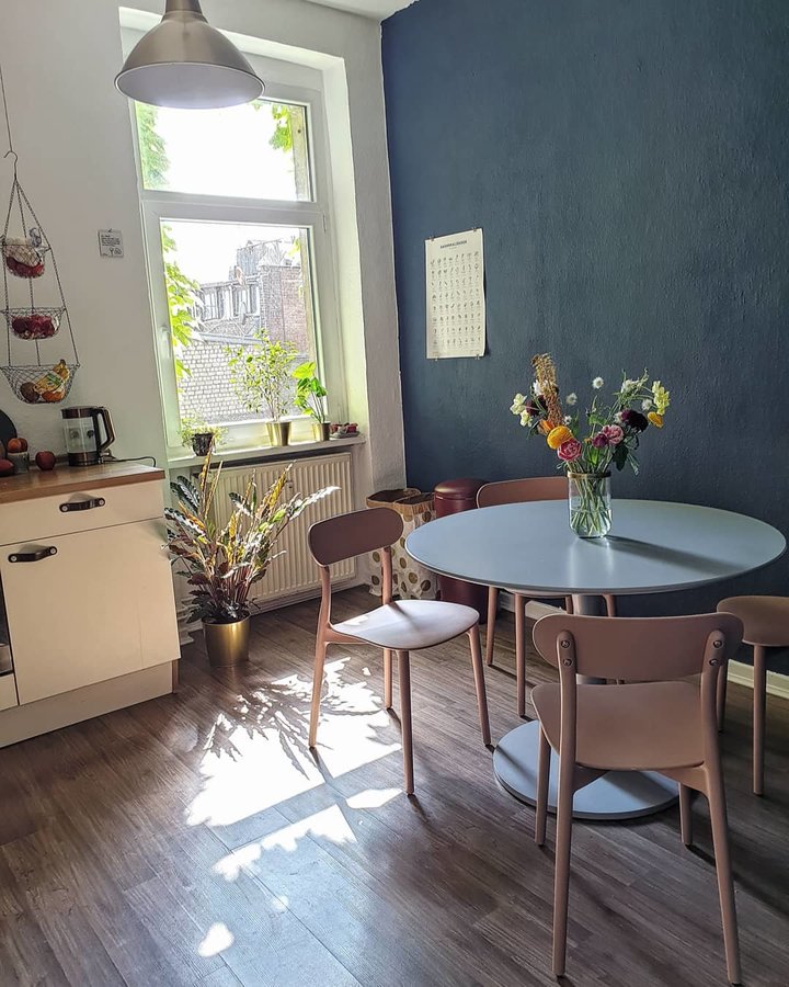 Küche, Essecke, Tisch, Stühle, Altbau, Altbauliebe, Altbauwohnung, Blumen, Vase