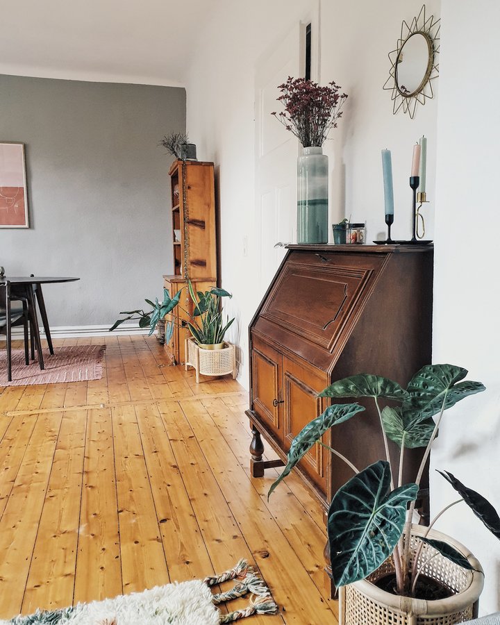 Sekretär, Dielen, Dielenboden, Altbau, Altbauliebe, Altbauwohnung, Esszimmer, Anrichte, Teppich, Stühle