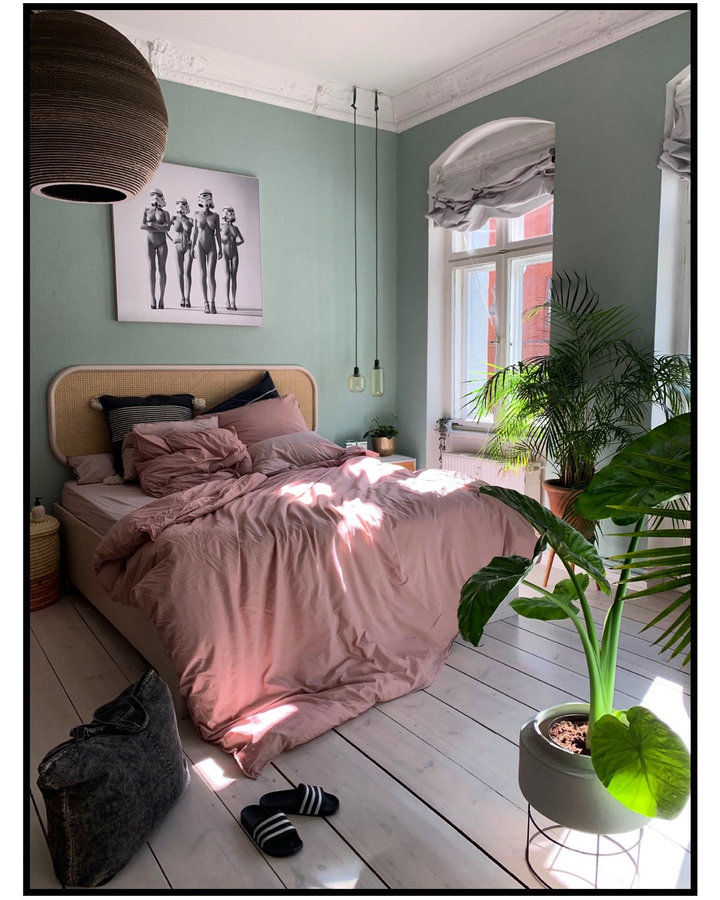 bedroom, Schlafzimmer, Wandfarbe, Türkis