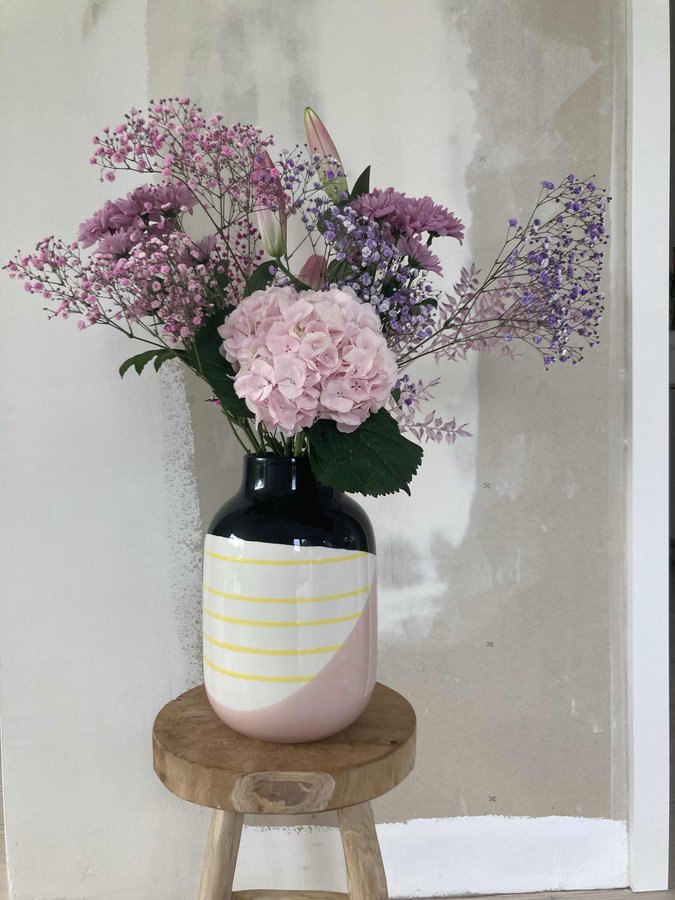 Blumen, Motel a Miio, Vase, Hocker, Unfertige wand