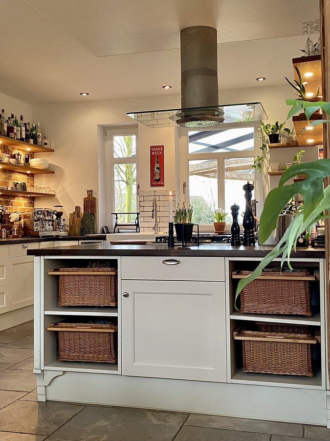 Küche, Landhausküche, Kücheninsel, Wandregal