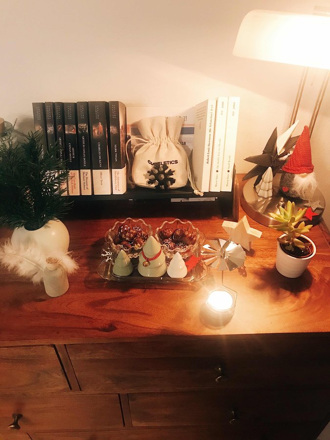 Unsere Weihnachtsecke. Danke @StephaniePoulain für den hübschen Beton-Engel und das fröhliche Teelicht 🥰🎄