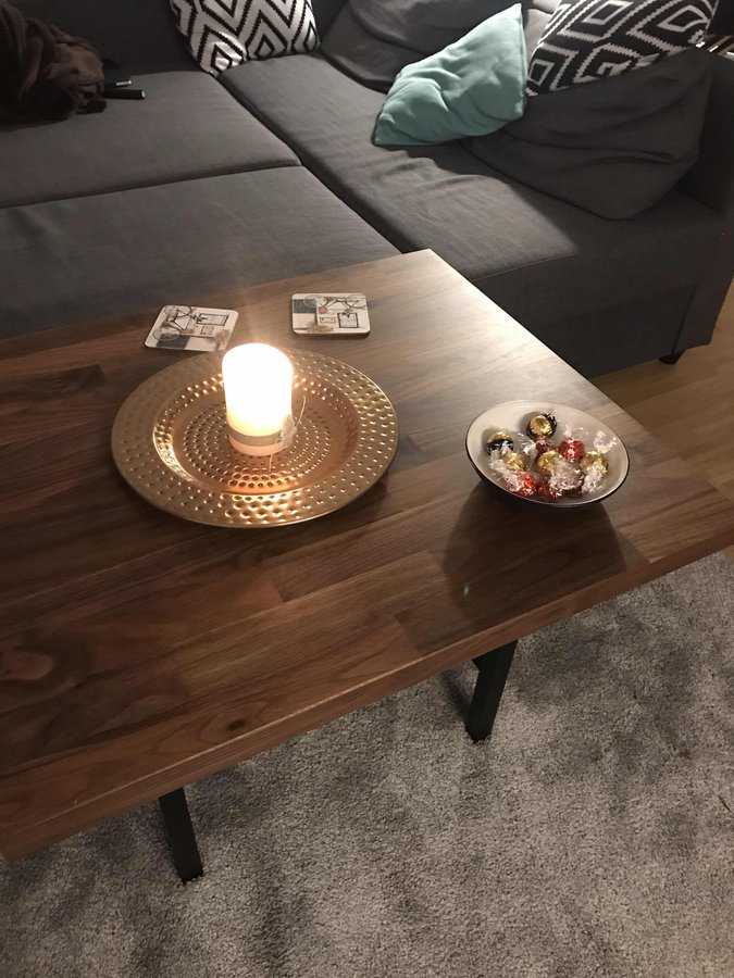 Selbstgemacht, Selbstgebaut, Couchtisch, Wohnzimmer, Hygge, Kerzenlicht, Holzmöbel