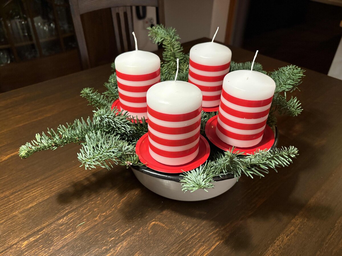 Streifen, Emailleschüssel, Advent
