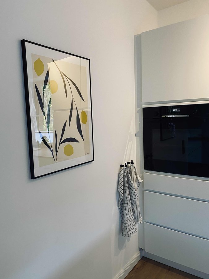 Ein paar Bilder kommen nun auch an die Wand🙂 klein bisschen Farbe in die sonst schwarz/weiße Küche!