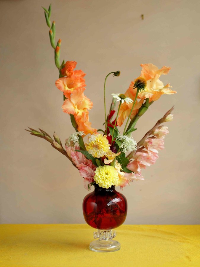 Blumen, Blumenstrauß, Farbenfroh, Vintage, Vase, Gelb, Rot, Bunt