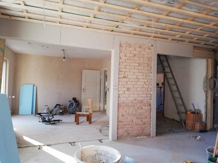 Altbau, Neubau, Klinker, Backsteine, Wohnzimmer, Esstimmer, Betondecke