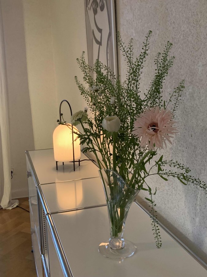 Wohnbereich, Altbauliebe, Woud, Blumendekoration, USM Haller, Kunst, Minimalismus, Gemütlichkeit, Scandinavian, Abendstimmung