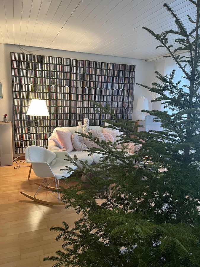 Zu meinem Erstaunen! Kein Millimeter höher dürfte die Weisstanne sein. Was auf dem Rad so klein gewirkt hat ist in der Stube riesig.