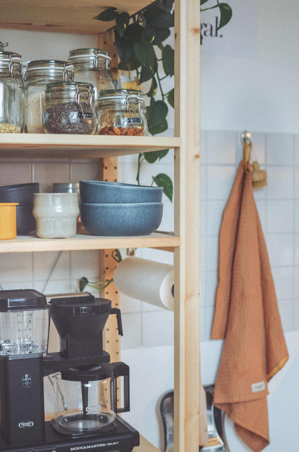 Küche, Ikea, Ikea Ivar, Ivar, Regal, Küchenregal, Kaffeemaschine, Keramik, Tassen, Schalen