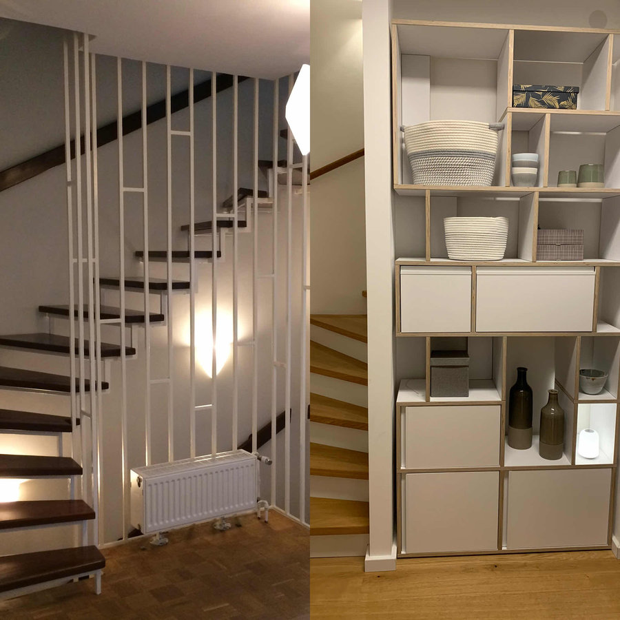 Zwischen den beiden Fotos liegen mehrere Jahre und eine rund 3-monatige Umbau-Zeit, in der wir alle drei Treppen in unserem Reihenhaus komplett entfernt haben. In dem Zuge wurden auch die Bodenbeläge erneuert und viele neue Kabel verlegt...