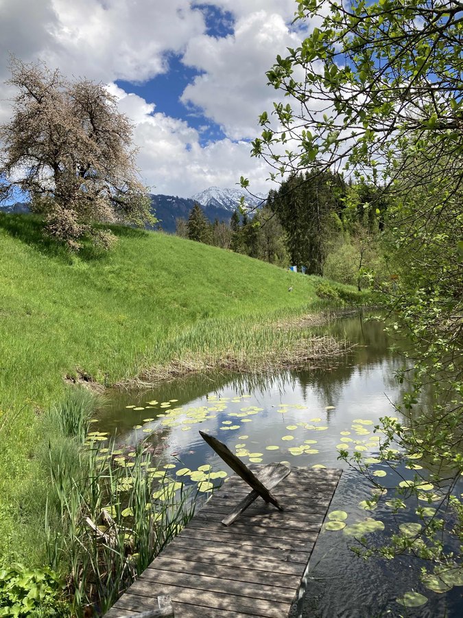 Garten, Weiher, Frühling, Steg