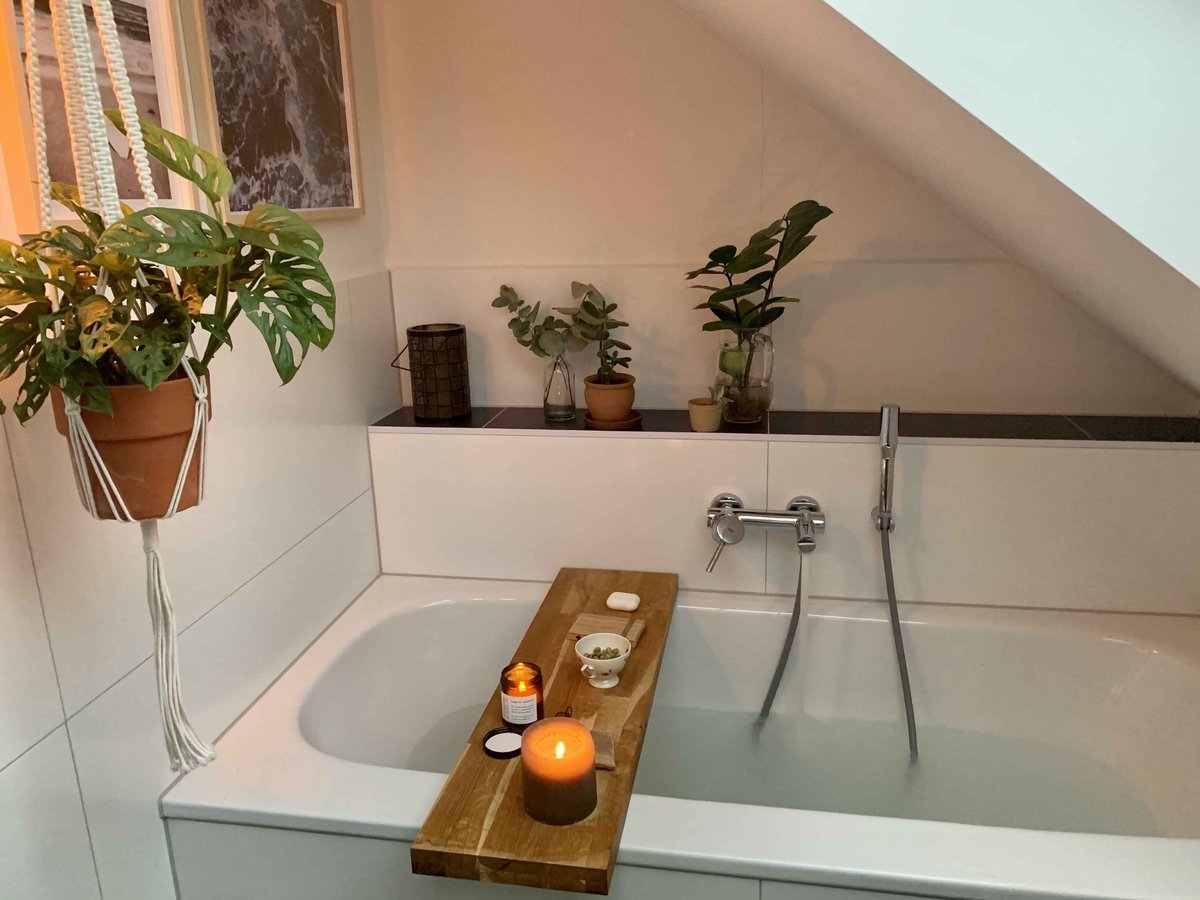 Bad, Badewanne, Badezimmer, Makramee, Monstera, Desenio