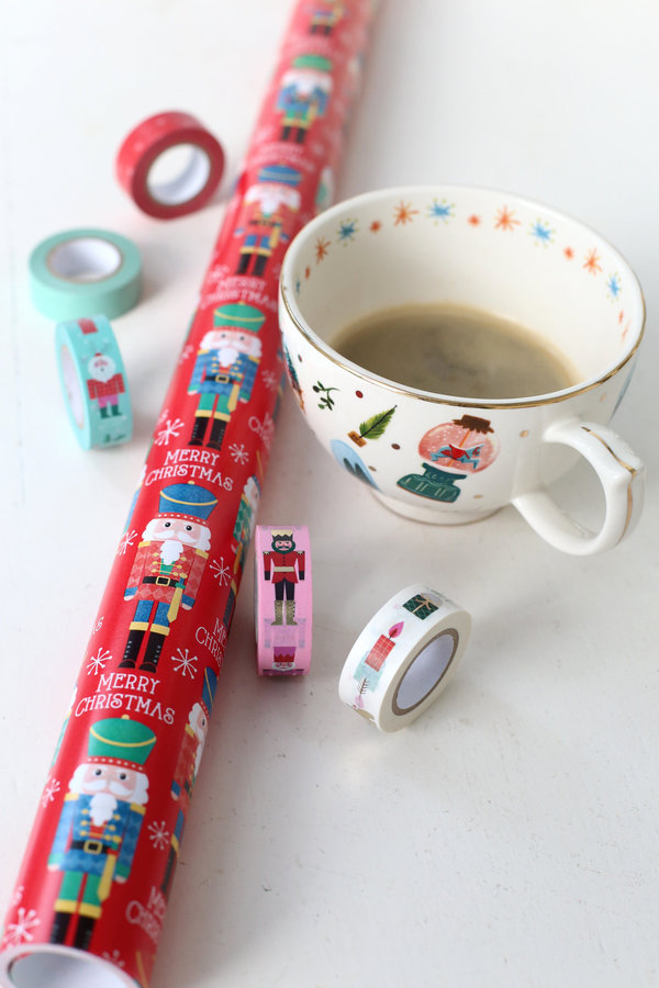 Geschenkpapier, Nussknacker, Tasse, Schüttelglas, Weihnachten, Advent, Adventszeit, Masking Tape
