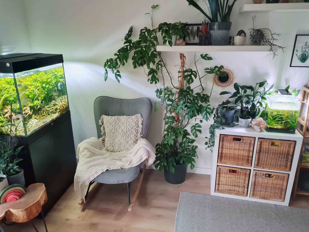 Wohnzimmer, Schaukelstuhl, Aquarium