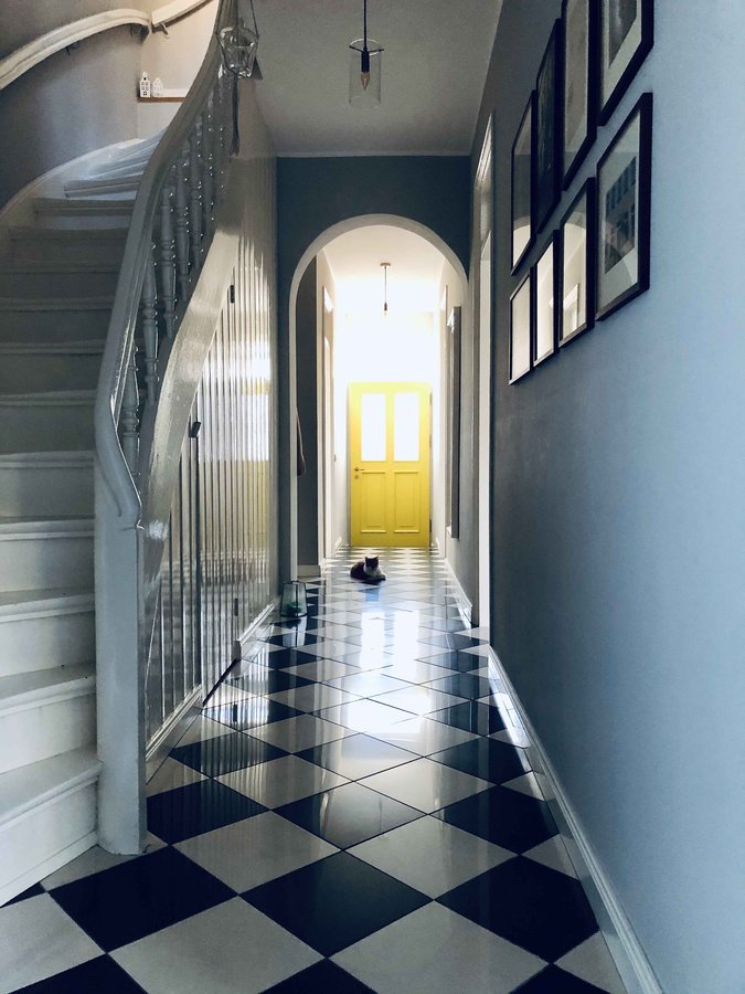 Von außen ahnt man nicht, welch helles und fröhliches Gelb unsere Haustüre im Inneren verbirgt. Zusammen mit unserem graugehaltenem Flur, sind wir farbliche Trendsetter. #Ultimate Gray und #Illuminating