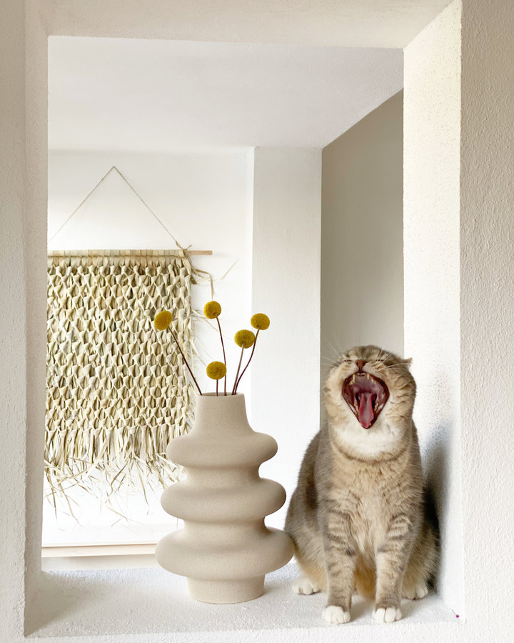 Wohnzimmer, Esszimmer, Katze, Vase, Wandbehang