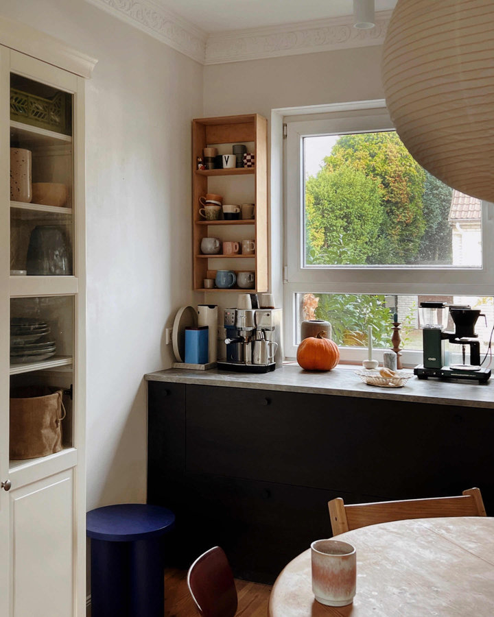 Küche, Regal, DIY, Kaffeepause, Kaffeeecke, Herbst, Vitrine, Altbau, Stuck, Moccamaster, Kaffeemaschine, Tassen, Keramik