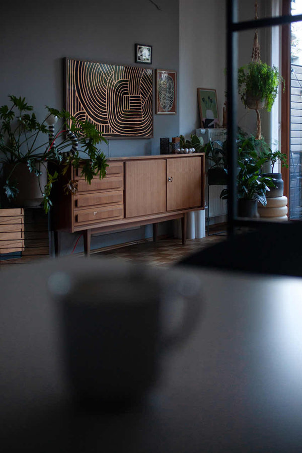 Wohnzimmer, Kaffee, Müde, Vintage, Sideboard, Morgens, Pflanzen
