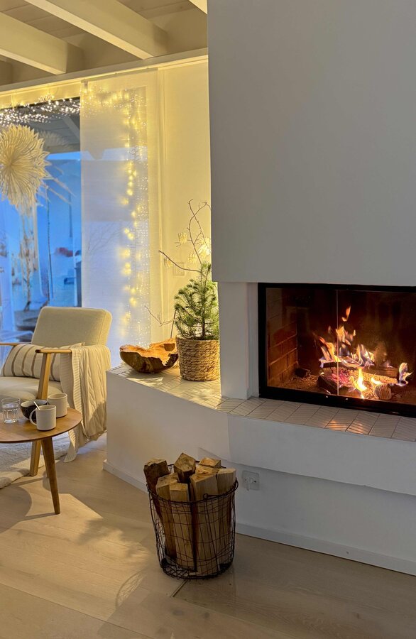 Kamin, Kaminbank, Wohnzimmer, Winternachmittag