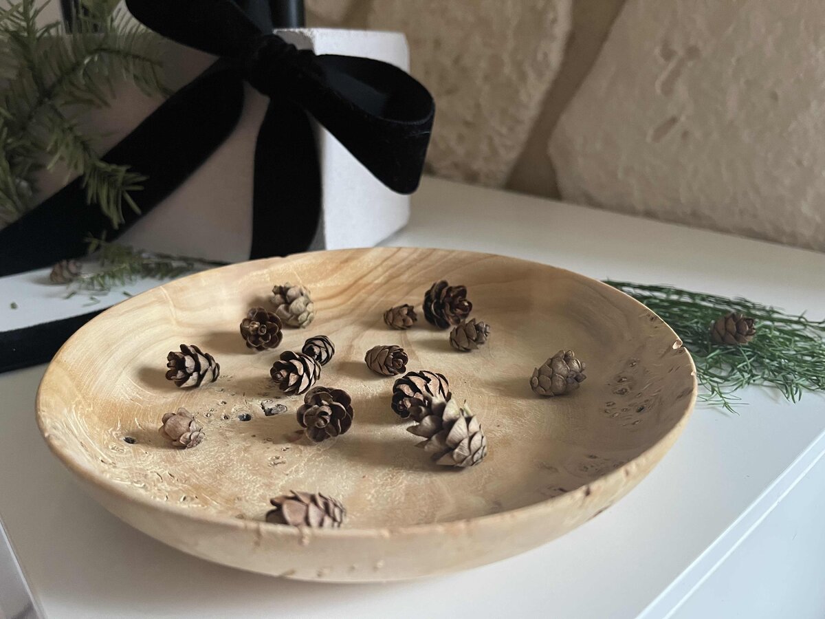 Handwerk, Holzarbeit, Holzteller, Teller, Holzdeko, Tannenzapfen, Wohnzimmer, snild, Adventsdeko, Advent, Weihnachten, Dekoidee