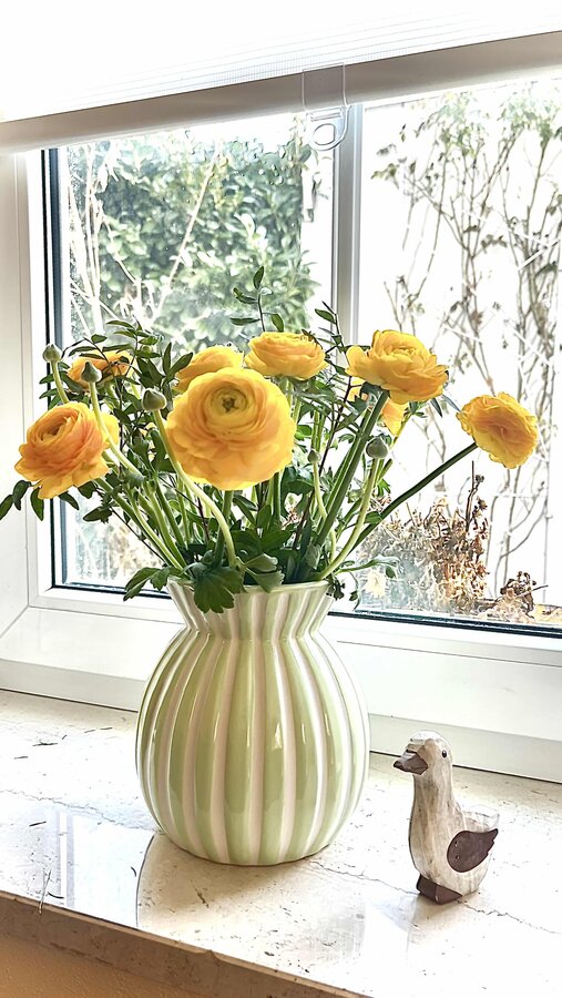 Vase, Vasen, Vasenliebe, Vasensammlung, Deko, Deko im Wohnzimmer, Ranunkeln, Gelb, Vasenmittwoch, Farbe, Hygge