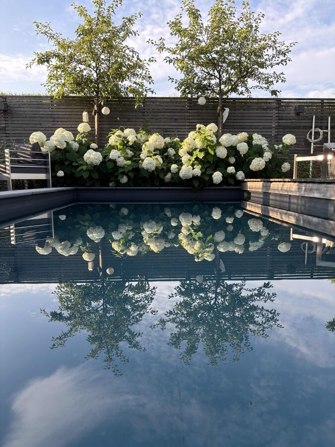 Pool, Garten, Terrasse, Hortensien, Sitzecke