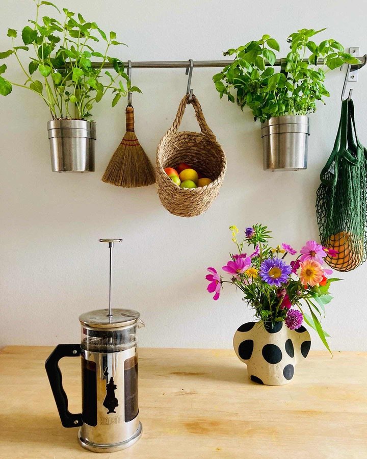 Grüße aus der Küche mit 2 Sachen, die nie fehlen dürfen: Kaffee + Blumen