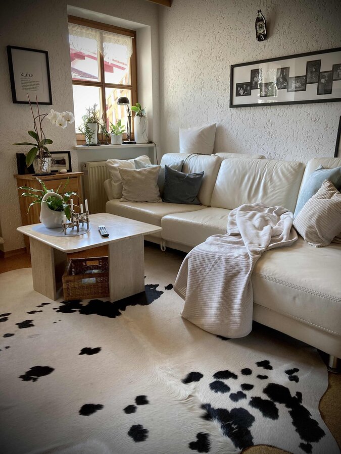 Couch, Tisch, Leder, Travertin, Kuhfell, Kissen