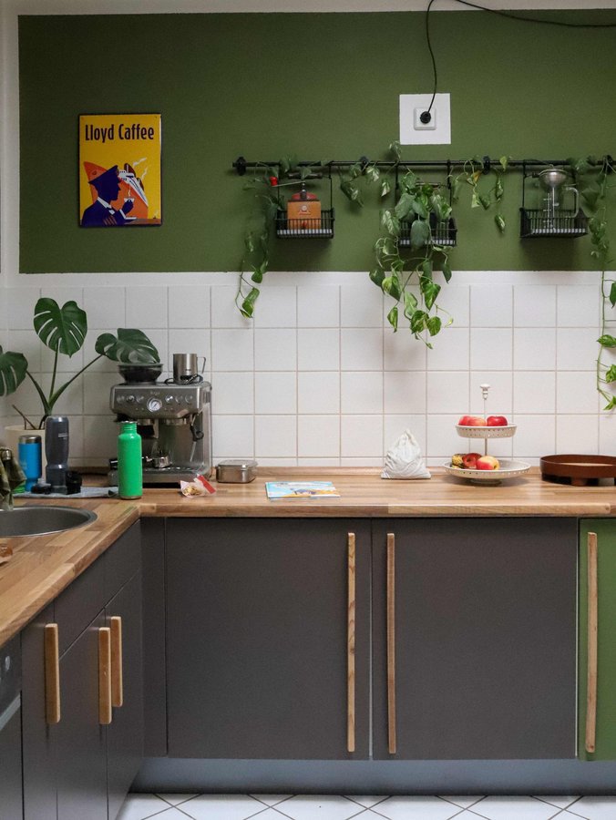 Küche, Offene Küche, Wandfarbe, Wandfarbe Grün, Farbenfroh, Pflanzen, Urban Jungle