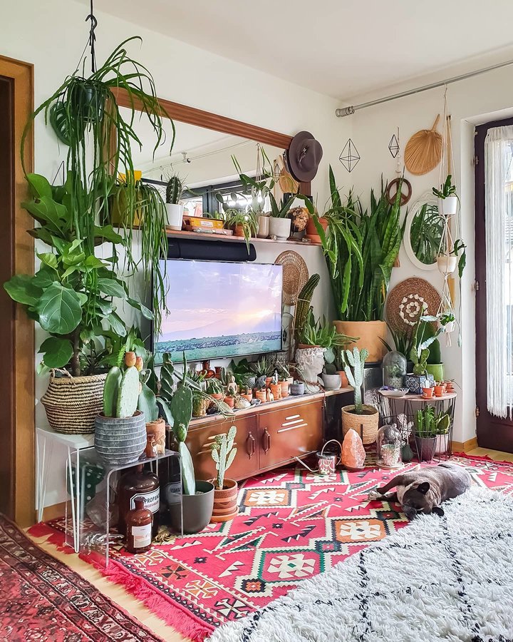 Wohnzimmer, Pflanzen, Boho, Hippie, Teppich, Kommode, Lowboard, Sideboard
