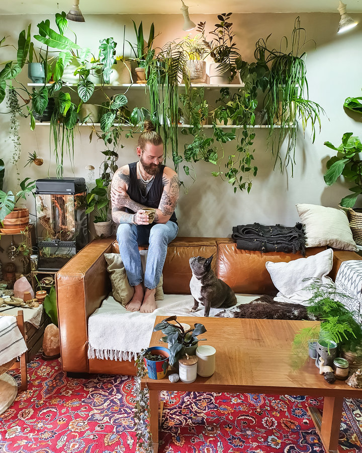 Wohnzimmer, Pflanzen, Teppich, Urban Jungle, Dschungel, Regal, Deko, Orientteppich, Perserteppich, Couch, Sofa
