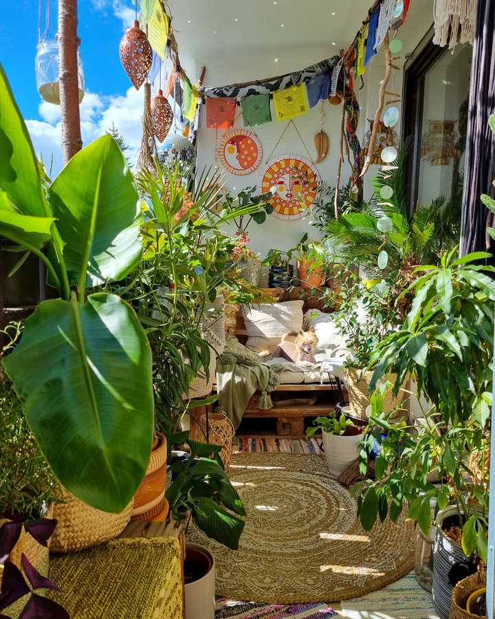 Balkon, Pflanzen, Terrasse, Patio, Teppich, Kissen, Decke, Sonne, Mond, Sommer, Deko, Dekoidee