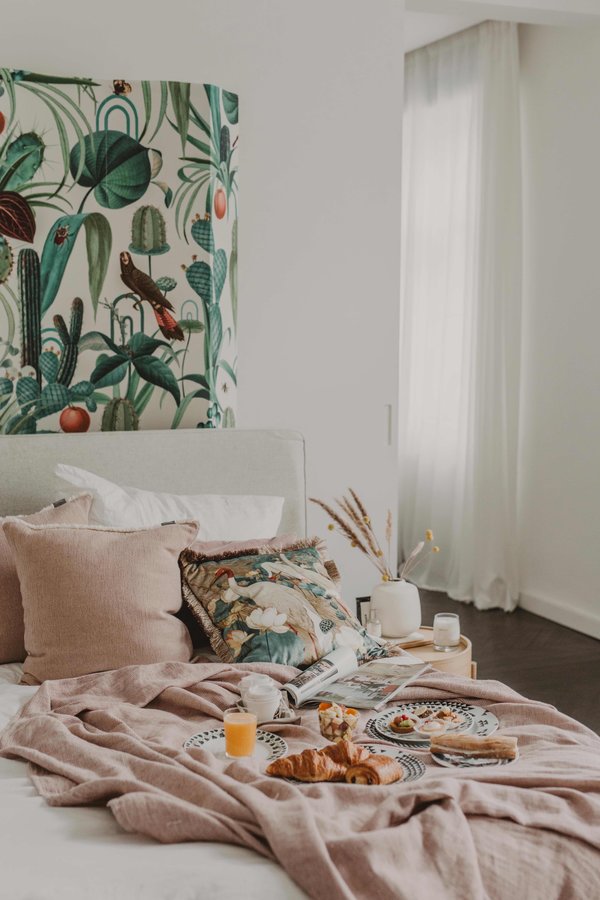 Schlafzimmer, Bett, Bettwäsche, urbanara, Tapete