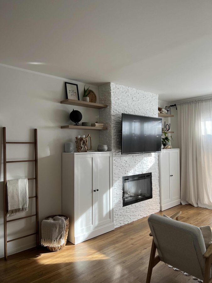 Do it yourself, DIY Kamin, TV, Dekoleiter, Regale, Mietwohnung, Reihenhaus, Wohnzimmer