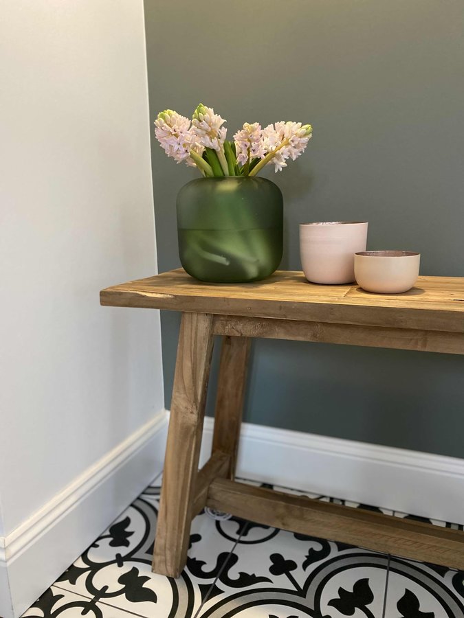 Hyazinthen, Flur, Deko, Zementfliesen, Holzbank