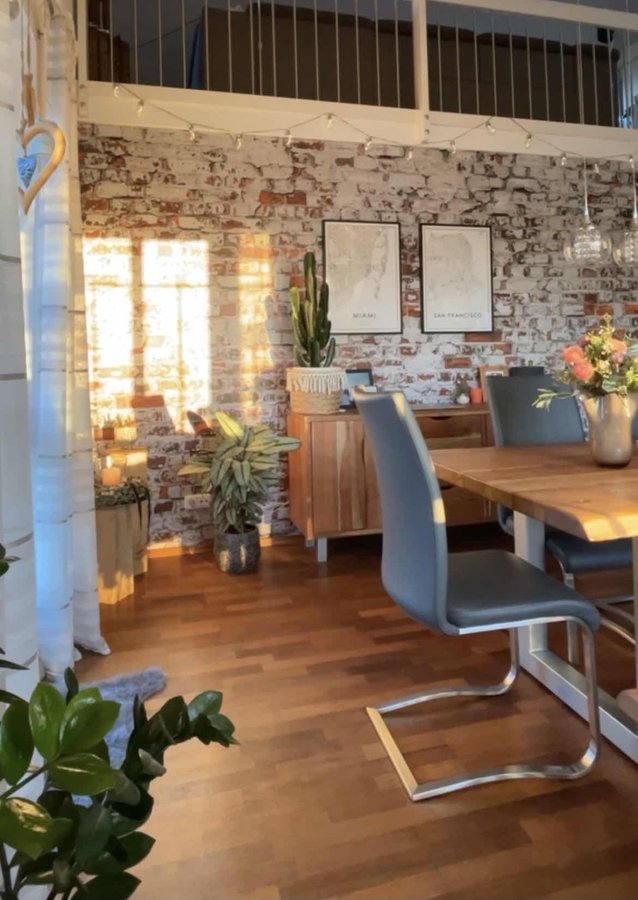 Esszimmer, Tapete, Steinwand, Pflanzen, Lichterkette, karedesign