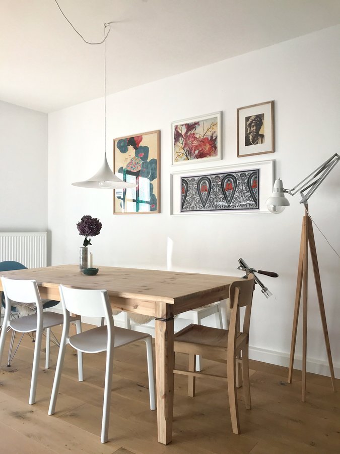 Küche, Essplatz, Esstisch, Galeriewand, Holz