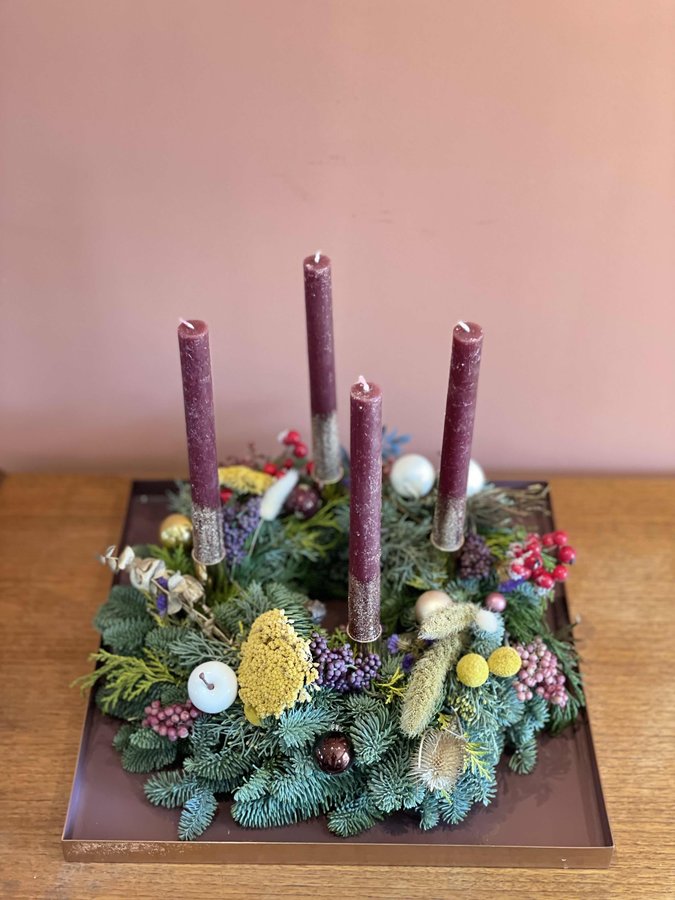 Advent Weihnachten Deko, Adventkranz, Weihnachtsdeko, Weihnachtsdekoration, Weihnachtszeit, Trockenblumen, Dekoration, Kerzen