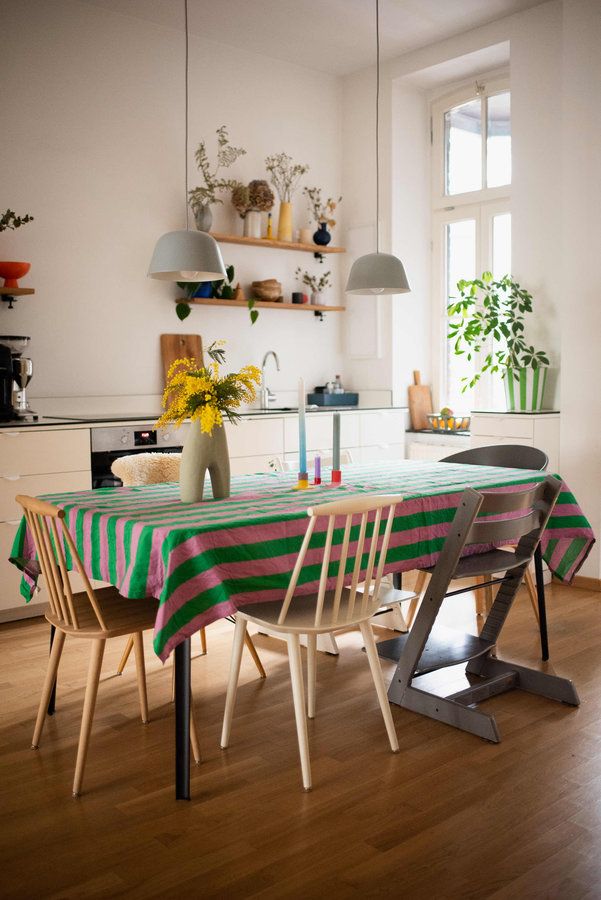 Wohnküche, Küche, Essplatz, Mimosen, Esstisch, Stuhlmix, Altbauwohnung