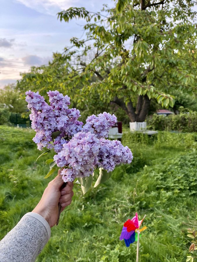 Garten, Gartenbank, Flieder, Windrad, Kleingarten, Bullerbü