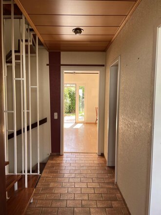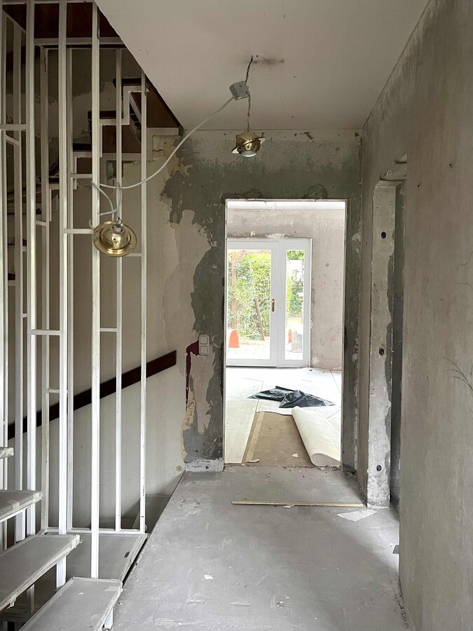 beton, Sanierung, Renovierung, Energiesanierung, 70er, 80er, Harfentreppe, Treppenhaus, Flur, Garten, Gartenblick, Rohbau, Haus, Hausbau, Reihenhaus, Reihenmittelhaus
