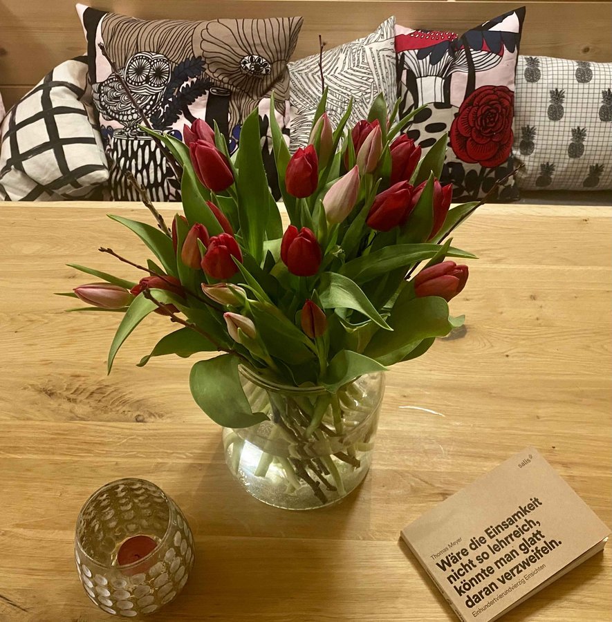 Lektüre, Tulpen, Abendstimmung, Kissen, Marimekko