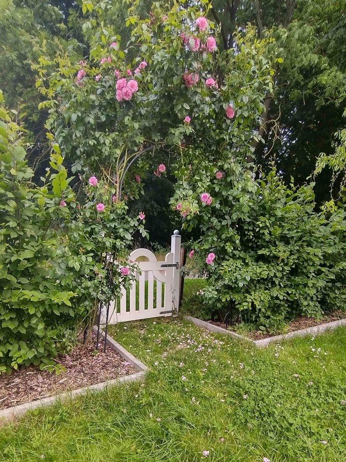 Diese Pforte führt aus unserem Garten heraus aufs Feld.