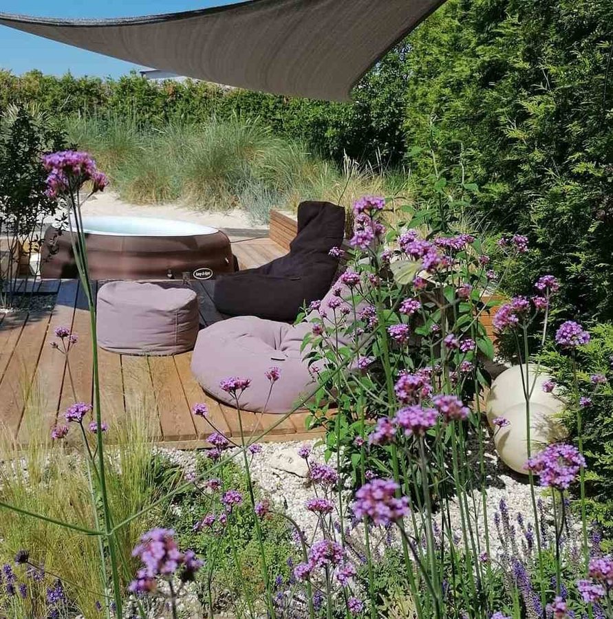 Garten, Terrasse, Holzterrasse, Sitzsack, Outbag, Stauden, Verbenen, Lieblingsplatz, Chillecke