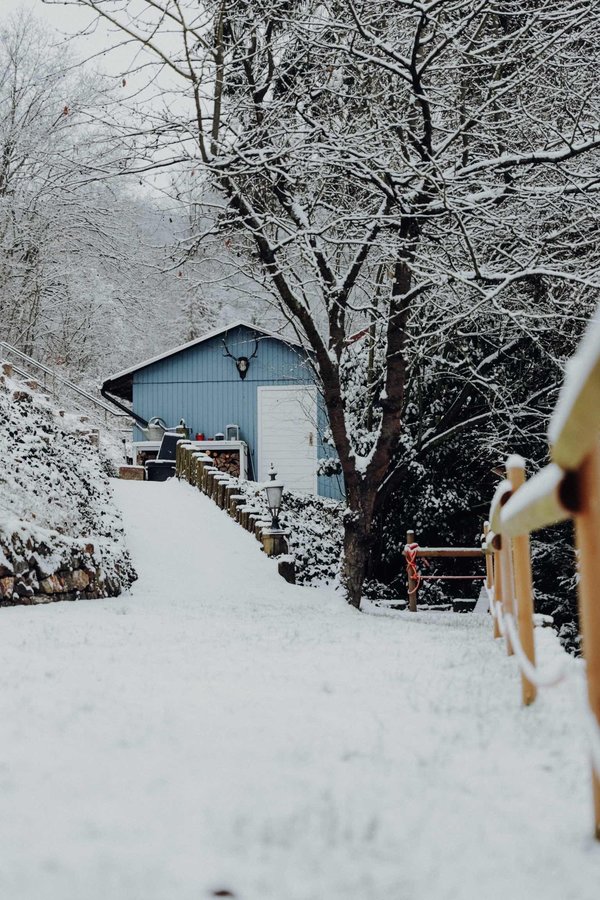 Schnee, Garten, Winter, Landschaft, Gartenhaus