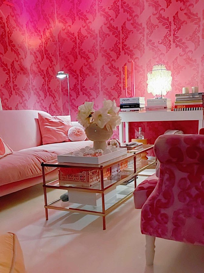 Farbe, Pink, Tapete, Wohnzimmer, Couchtisch, Glas, Messing